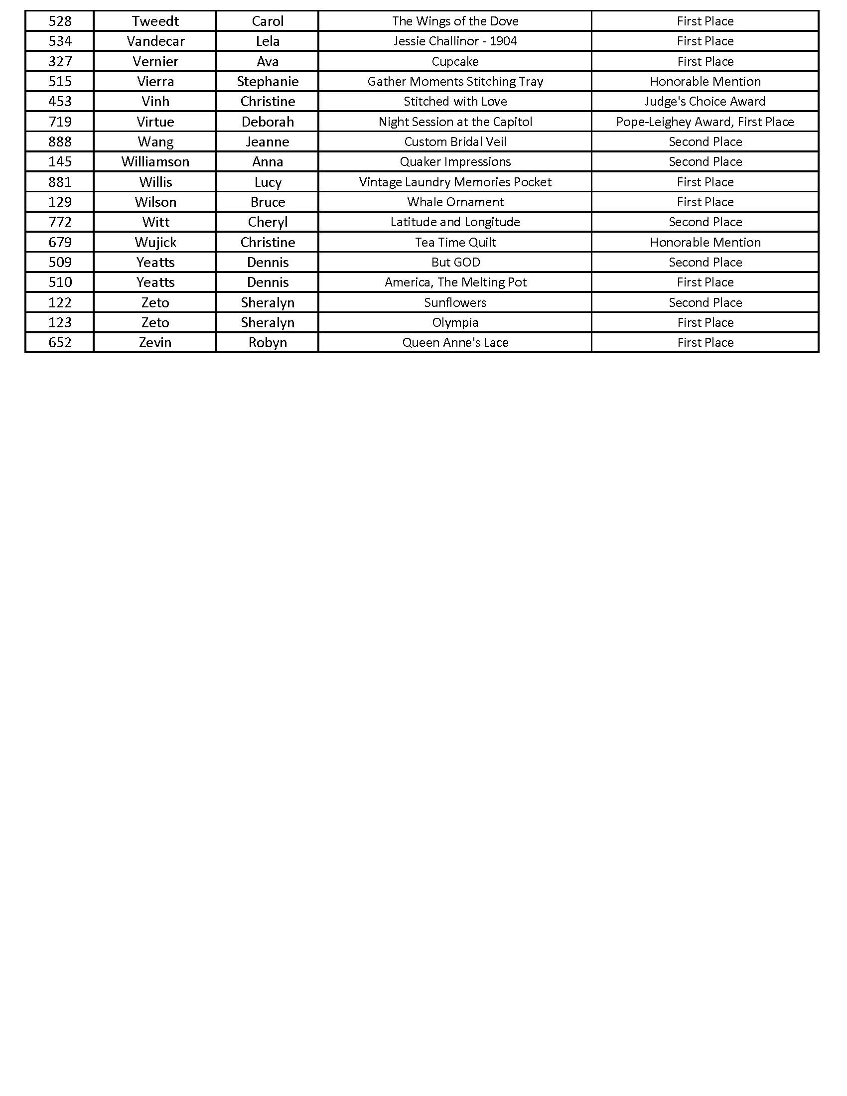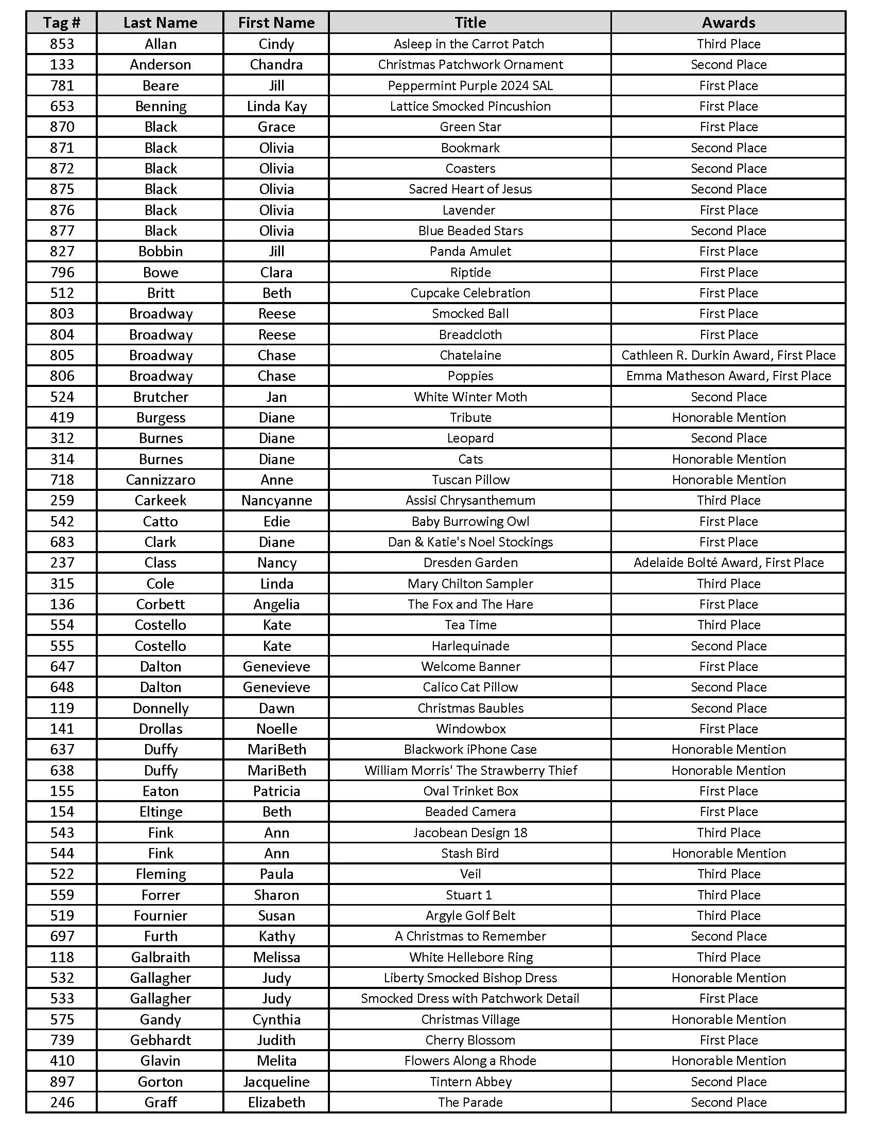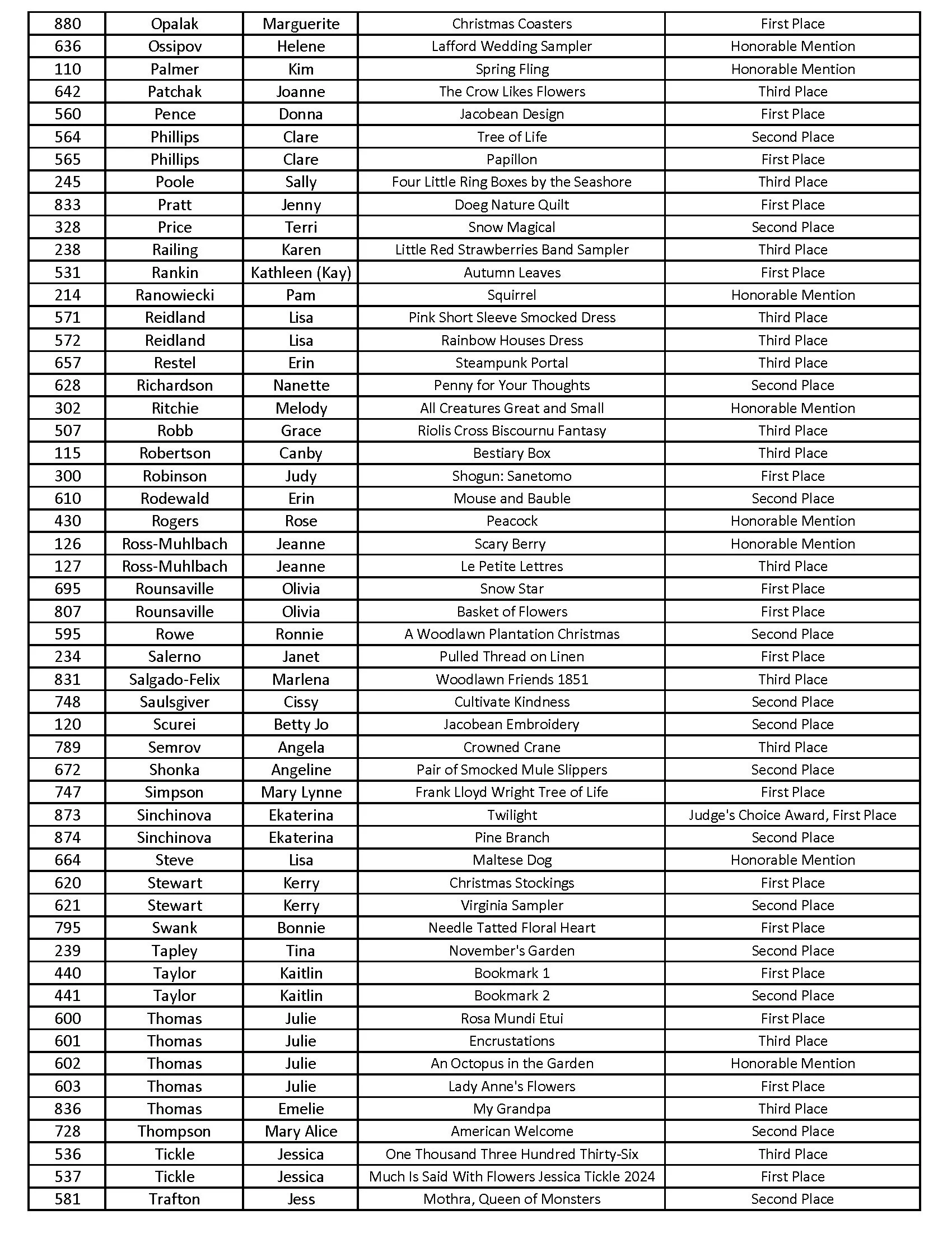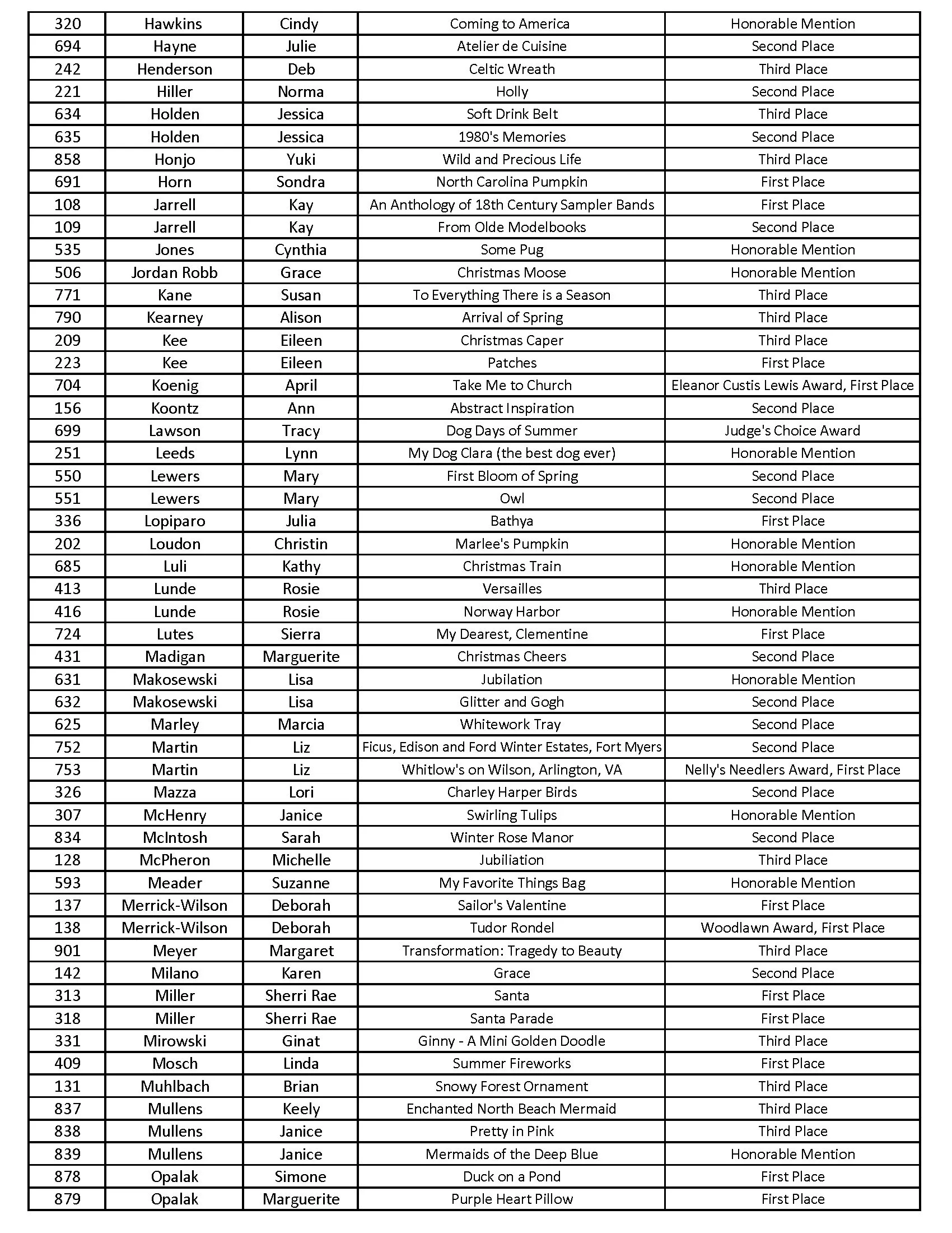 2026 Woodlawn Needlework Show AwardS